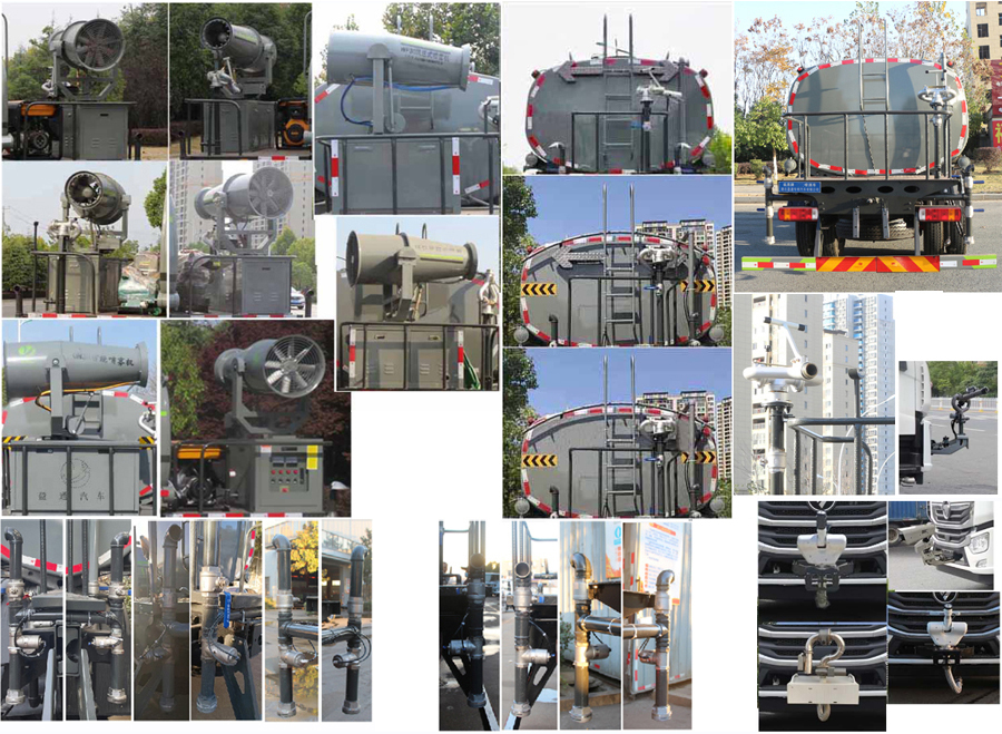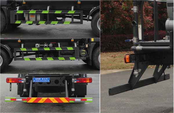 該車主要用于城鄉園林綠化,路面噴灑,除塵和降溫;主要裝置為罐體及噴灑裝置;罐體總容量:11.4立方米;罐體有效容積:10.86立方米;罐體外形尺寸(×長軸×短軸)(mm):5200×2300×1400;4200×2300×1450;側、后防護材料均為:Q235碳鋼,連接方式均為:螺栓連接,后部防護截面尺寸(mm):120×50,后部防護離地高度(mm):470;ABS系統型號:ABS-VI.E;生產企業:廣州瑞立科密汽車電子股份有限公司.ABS系統型號:ABS-E;生產企業:威伯科汽車控制系統(中國)有限公司,ABS系統型號:3550D-1010;生產企業:東科克諾爾商用車制動系統(十堰)有限公司.采用4500mm軸距。選裝尿素罐位置,選裝電瓶位置。選裝后部箭頭燈,選裝后部弧形噴灑裝置,選裝水炮支架位置,選裝自動球閥安裝位置,選裝前部水炮樣式,前伸為500mm,對應整車長度為8950mm,7950mm