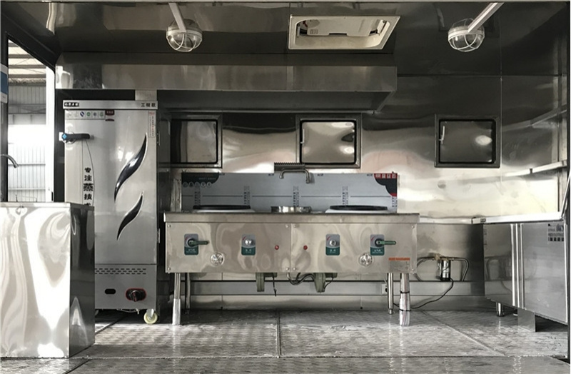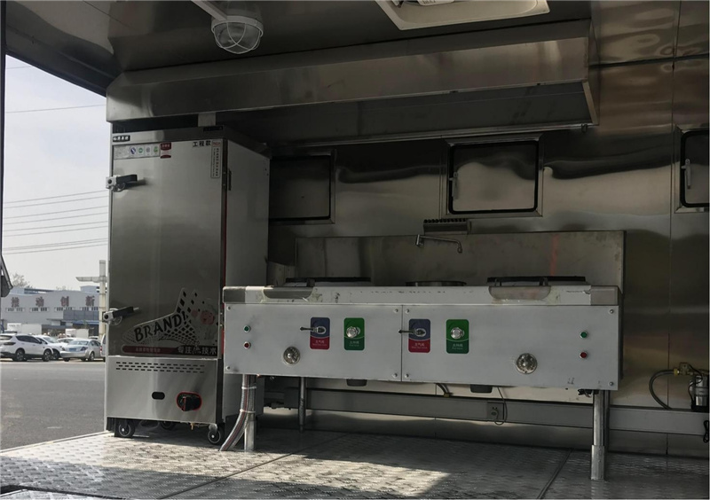 【4】廂體內(nèi)部配備蒸飯柜、猛火灶、平冷柜、煙機(jī)、水池、菜架