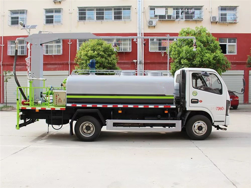 上裝配置:罐體為5立方圓形罐,罐體內部做防腐,帶加熱功能,前沖、后灑、側噴、高炮,抑塵噴灑桿(帶旋轉伸縮功能)。噴灑桿離地3.4-4.4米,后部平臺帶8KW副發電機組,罐體內部加兩個1.5KW電動馬達(帶攪拌功能)罐體噴漆嚴格按公告色。
