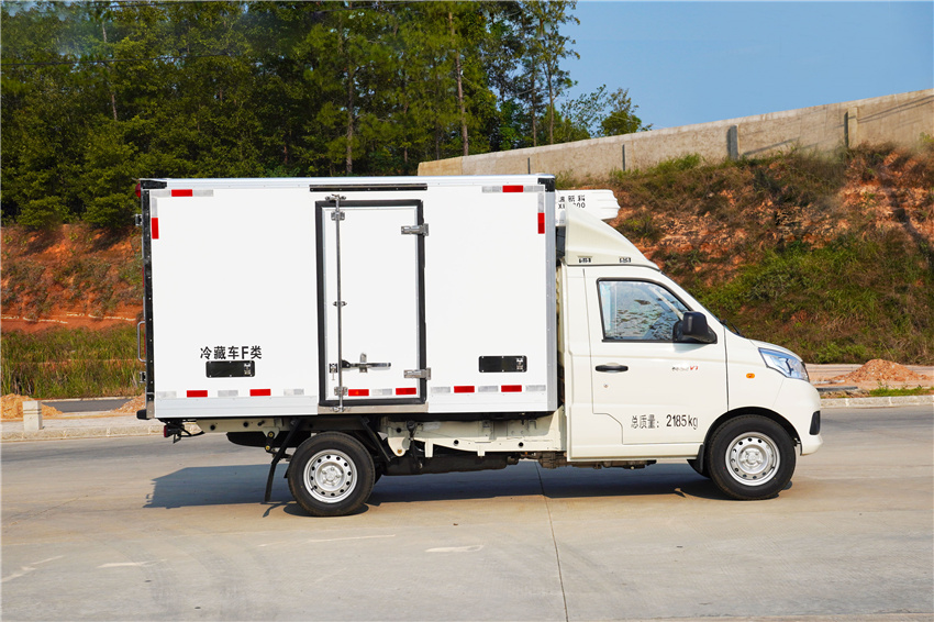 福田祥菱M1冷藏車采用國六汽油東安115馬力(DAM15KR)發動機,5擋變速箱,2750軸距,高配,原廠空調,后雙胎,5檔變速箱,175R14后雙胎,122后橋,ABS,電動助力轉向,