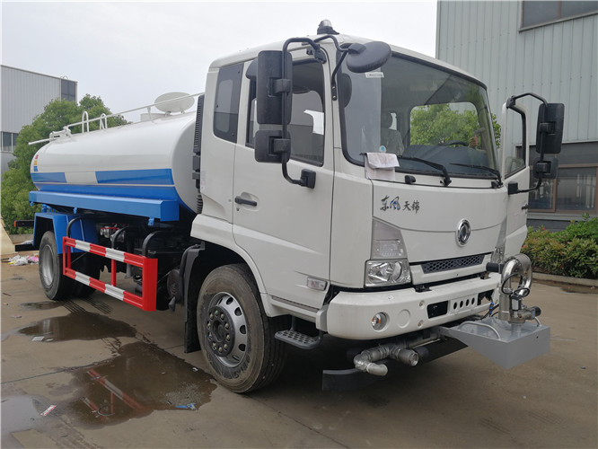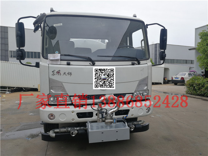 灑水車前裝有鴨嘴形噴嘴或圓錐形沖嘴,后面裝有圓柱形灑水噴嘴或蓮蓬頭噴嘴,后部有工作平臺,裝配有水炮。后還可裝8個噴嘴。