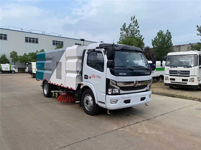 該洗掃車采用東風多利卡國六二類底盤改裝,加裝副發動機、風機、清水箱、垃圾箱、左右立掃、掃盤降塵系統、左右高壓側噴高、吸盤內置高壓主噴桿、氣動系統、液壓系統、專用裝置電控系統和副車架等改裝而成。